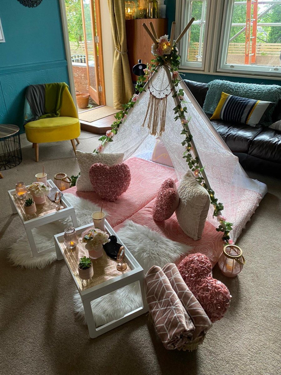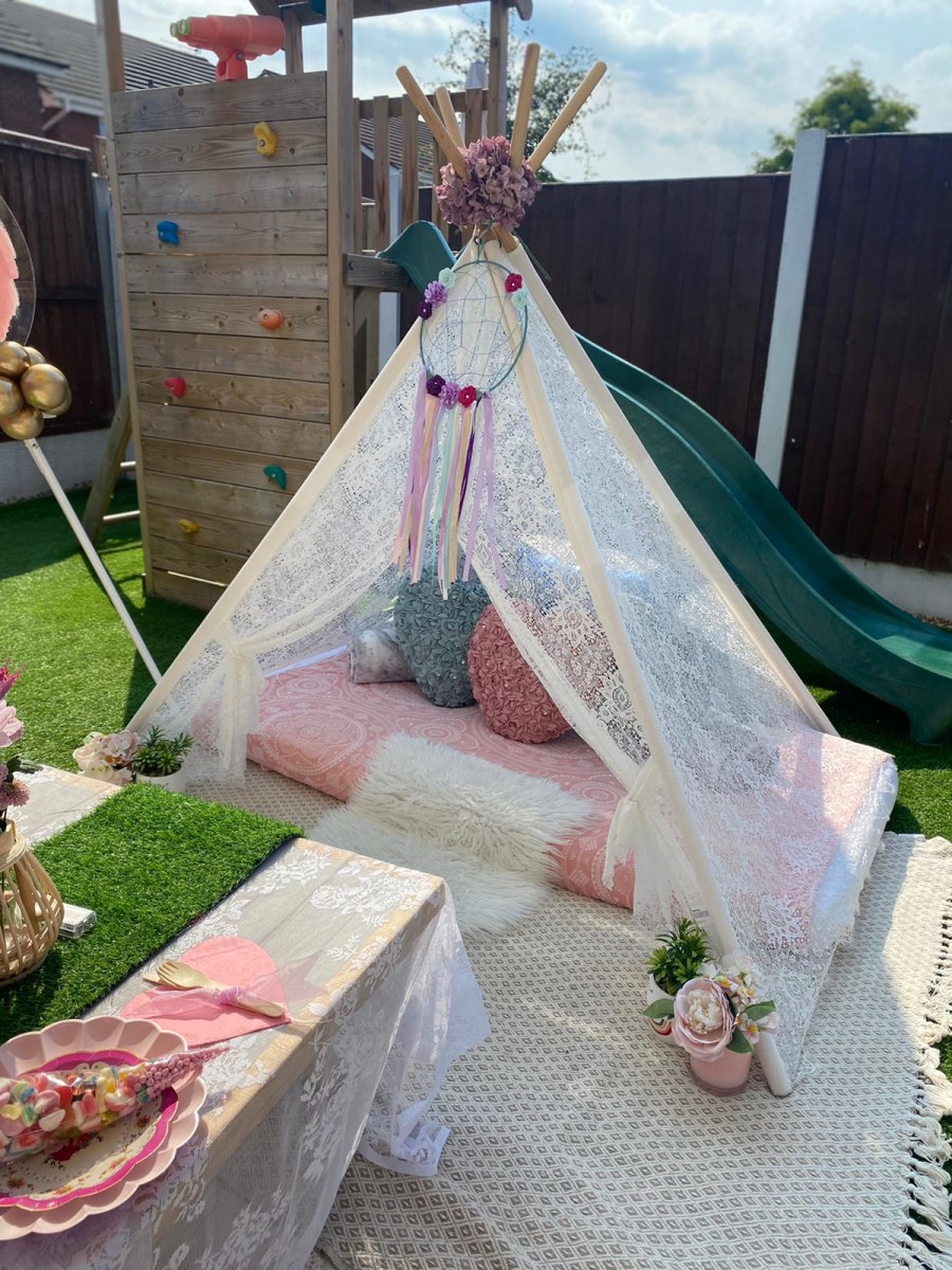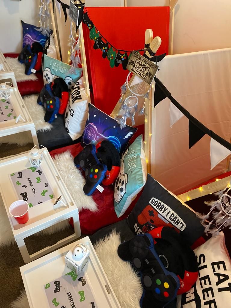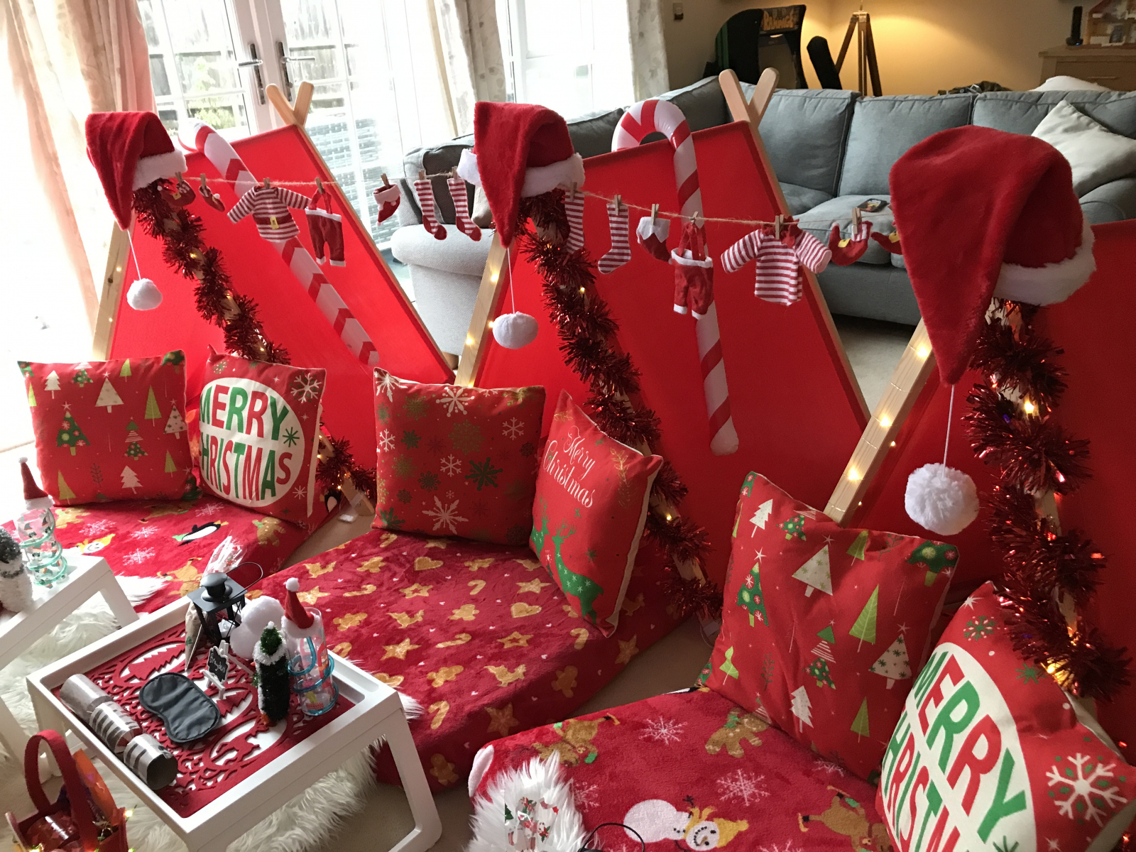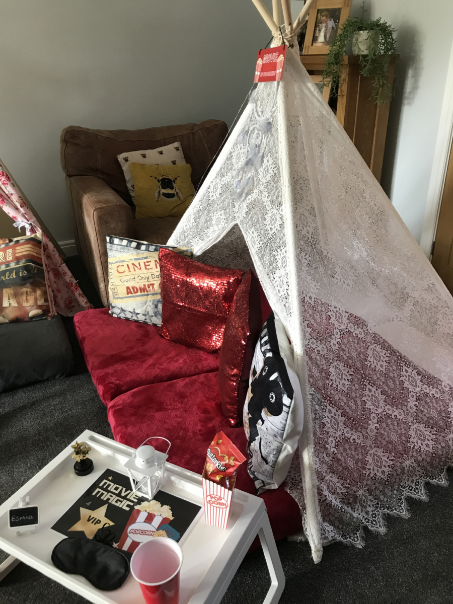 On this page you will find a selection of photos from some of our magical slumber party set-ups (The Grand Deluxe Double Lace Teepee; Tropical Flamingo; Game On!; Soccer Slumber; Glitz and Glamour; Movie Magic; Roarsome Dinosaurs; Treasures of the Sea; Ocean Adventures; Christmas Candy Cane; The Spa at Sleepy Teepee), click on any photograph for a larger image. We have also included a few videos to give you an idea of our magical set-ups. If you cannot see a theme that suits your needs, drop us a message and we will help to design a personal sleepover setup for you. All of our special themes are also available for play dates. Perfect for those who would prefer a party during the day or for children who are not quite old enough for a sleepover.