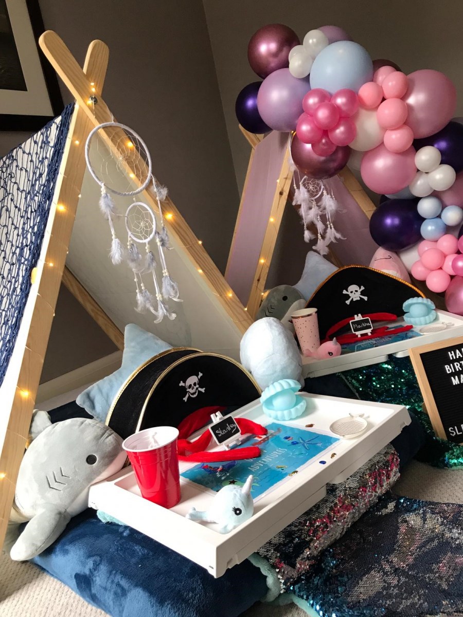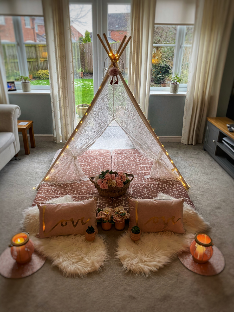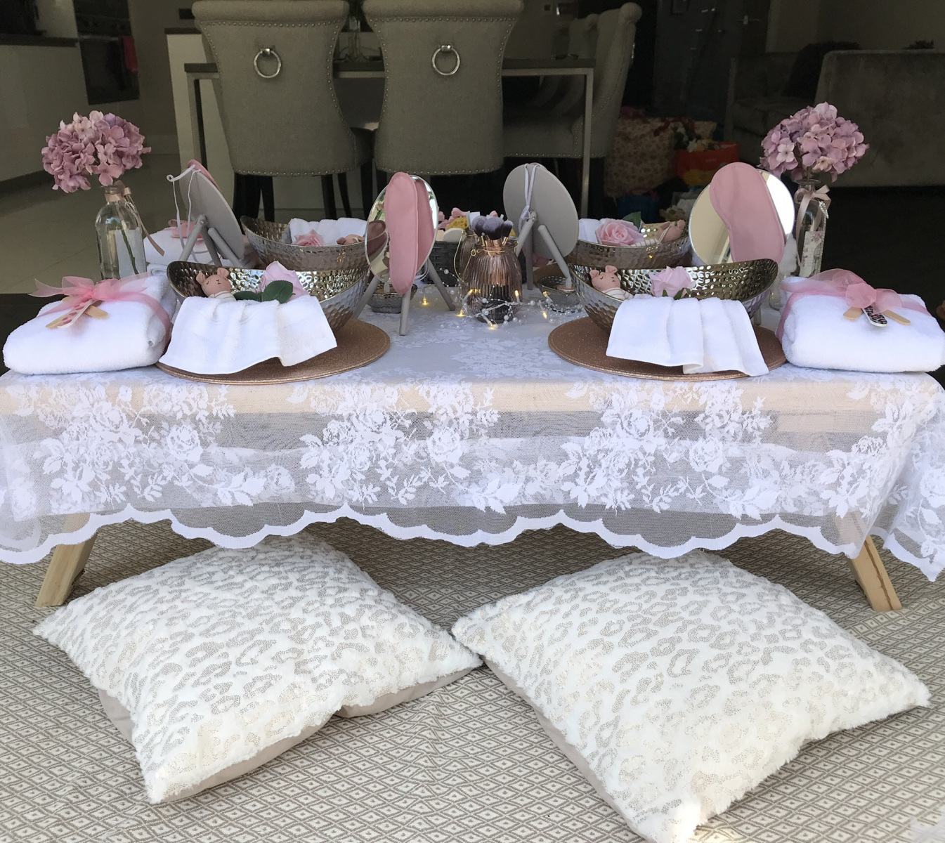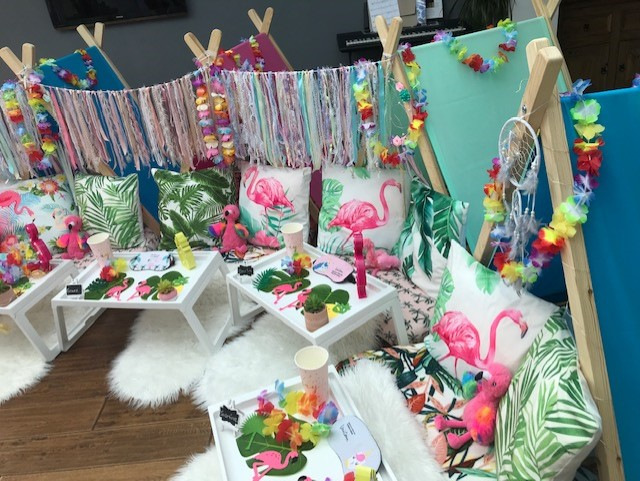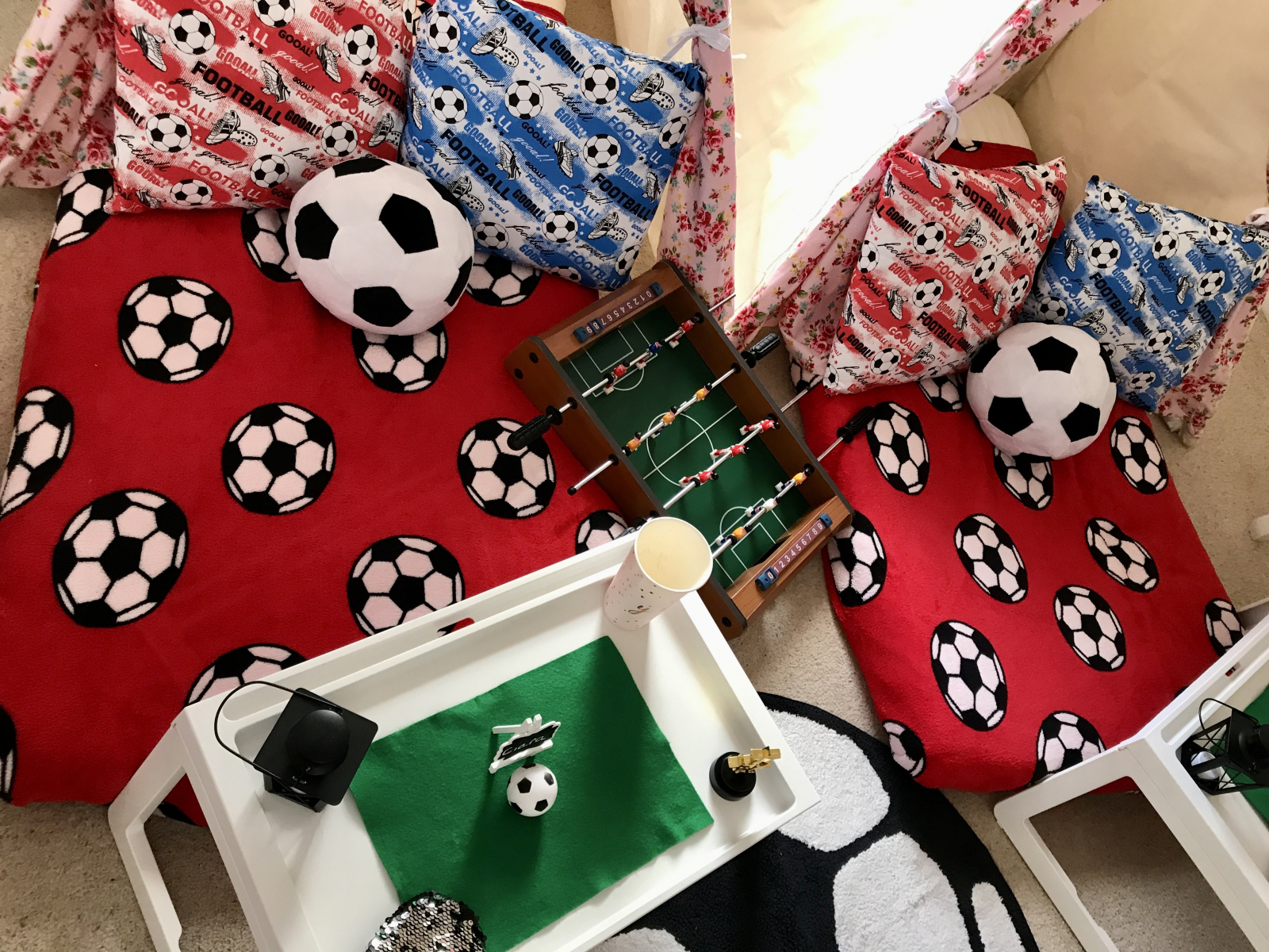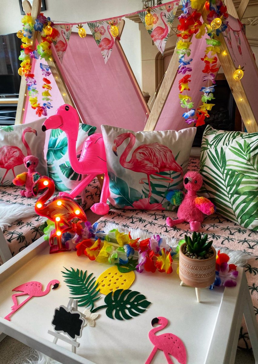 On this page you will find a selection of photos from some of our magical slumber party set-ups (The Grand Deluxe Double Lace Teepee; Tropical Flamingo; Game On!; Soccer Slumber; Glitz and Glamour; Movie Magic; Roarsome Dinosaurs; Treasures of the Sea; Ocean Adventures; Christmas Candy Cane; The Spa at Sleepy Teepee), click on any photograph for a larger image. We have also included a few videos to give you an idea of our magical set-ups. If you cannot see a theme that suits your needs, drop us a message and we will help to design a personal sleepover setup for you. All of our special themes are also available for play dates. Perfect for those who would prefer a party during the day or for children who are not quite old enough for a sleepover.