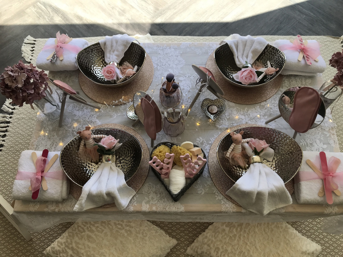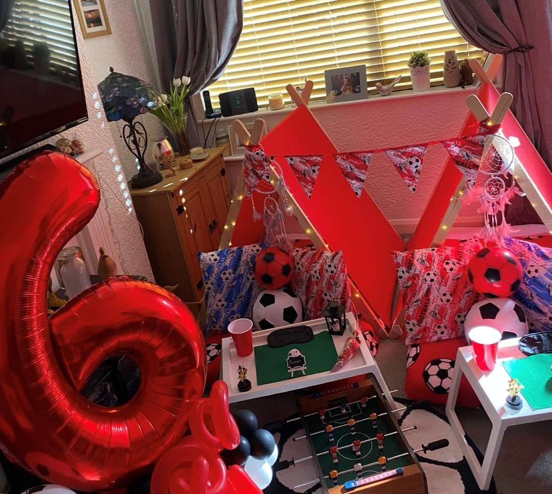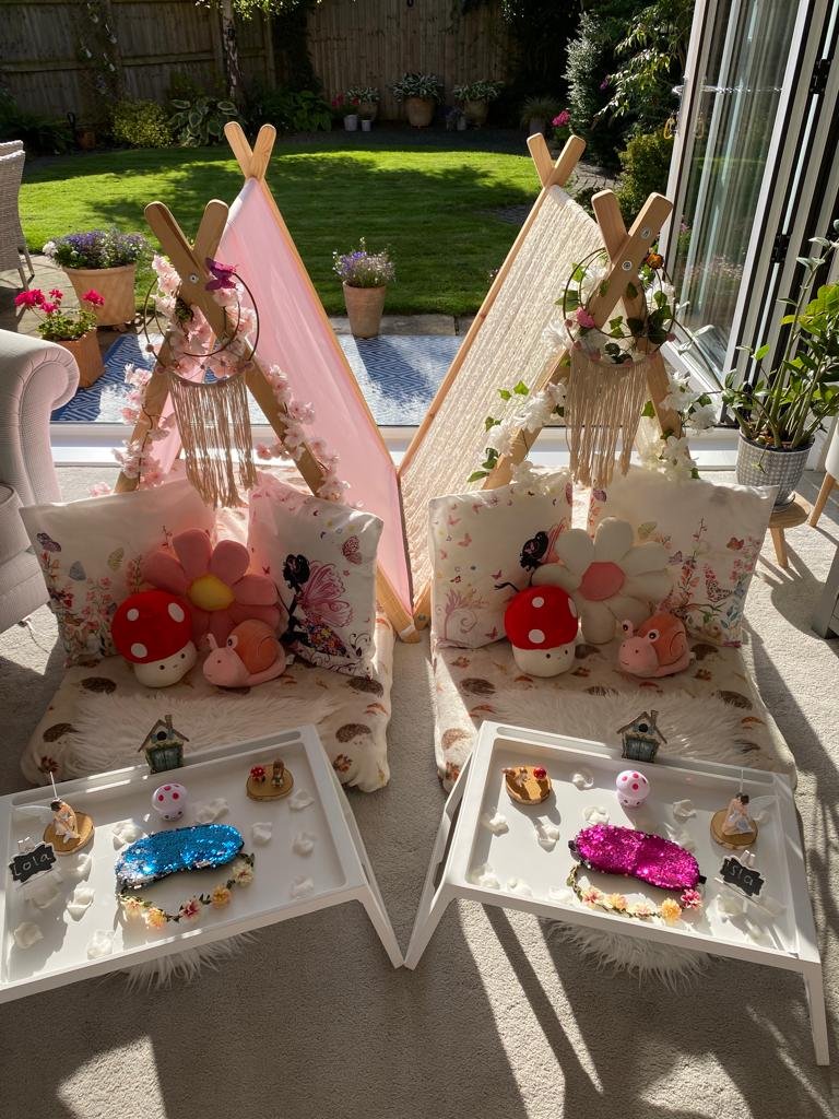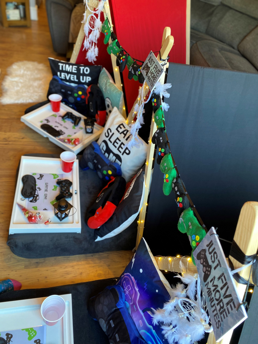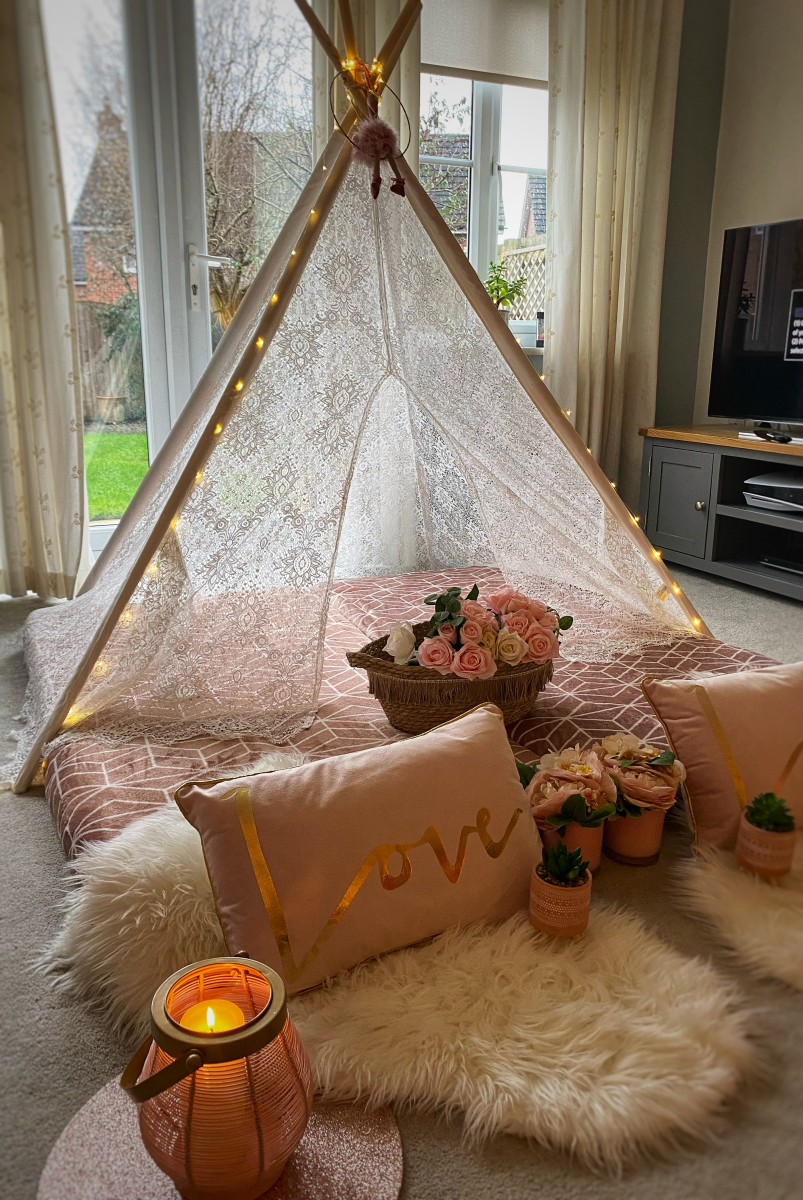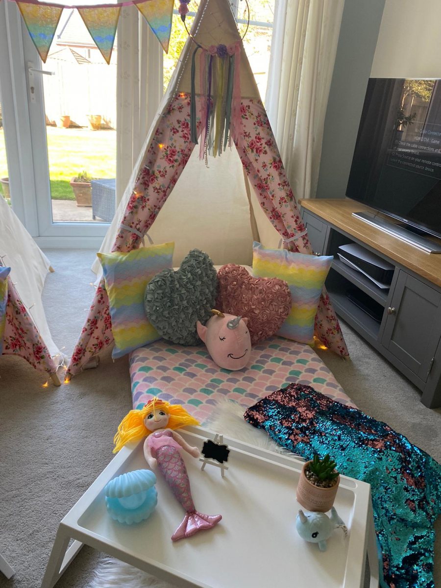 On this page you will find a selection of photos from some of our magical slumber party set-ups (The Grand Deluxe Double Lace Teepee; Tropical Flamingo; Game On!; Soccer Slumber; Glitz and Glamour; Movie Magic; Roarsome Dinosaurs; Treasures of the Sea; Ocean Adventures; Christmas Candy Cane; The Spa at Sleepy Teepee), click on any photograph for a larger image. We have also included a few videos to give you an idea of our magical set-ups. If you cannot see a theme that suits your needs, drop us a message and we will help to design a personal sleepover setup for you. All of our special themes are also available for play dates. Perfect for those who would prefer a party during the day or for children who are not quite old enough for a sleepover.